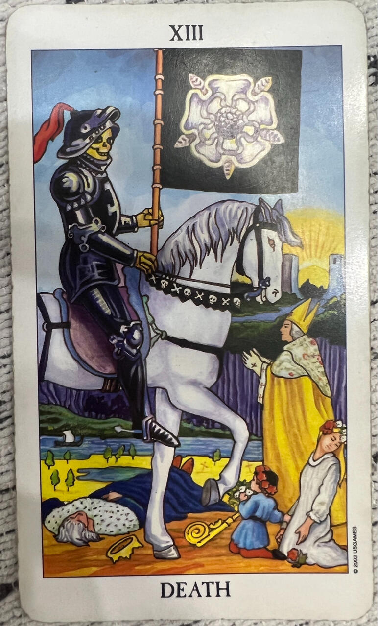 The Death card is one of the most powerful and memorable tarot cards, symbolising profound reinvention and transformation. While often misunderstood, its traditional meaning remains deeply relevant: The ending of one chapter and the birth of a new passage in life.At its core, the Death card represents shedding old routines, habits, and ties to make way for growth and renewal. This can manifest in many ways:Career changes: Perhaps you leave an old job and form new relationships with colleagues. While you may miss familiar faces and the comfort of the past, embracing the new environment and opportunities is necessary for growth.Family milestones: A child beginning school or high school marks the end of one phase of home life and the beginning of new routines and independence.Love and relationships: This card can indicate moving forward, whether that’s engagement, moving in together, or even the end of a marriage. If a relationship is ending, the Death card reminds us that this closure opens the door to a fresh start.The Death card’s essence lies in transformation. It signals that the way things once were is no longer sustainable; change is inevitable, and learning to accept and adapt is essential.Popular culture often misrepresents the Death card as something ominous or terrifying, using it as a symbol of doom or horror in movies and shows. However, in tarot, it’s a card of resurrection, resurgence, and powerful life transitions.Interestingly, the original artist of the Death card in the Rider-Waite deck, Pamela Colman Smith, lived a tragic life and died in poverty. Yet, her artwork has endured and continues to inspire millions, much like the Death card’s message of enduring transformation and new beginnings.